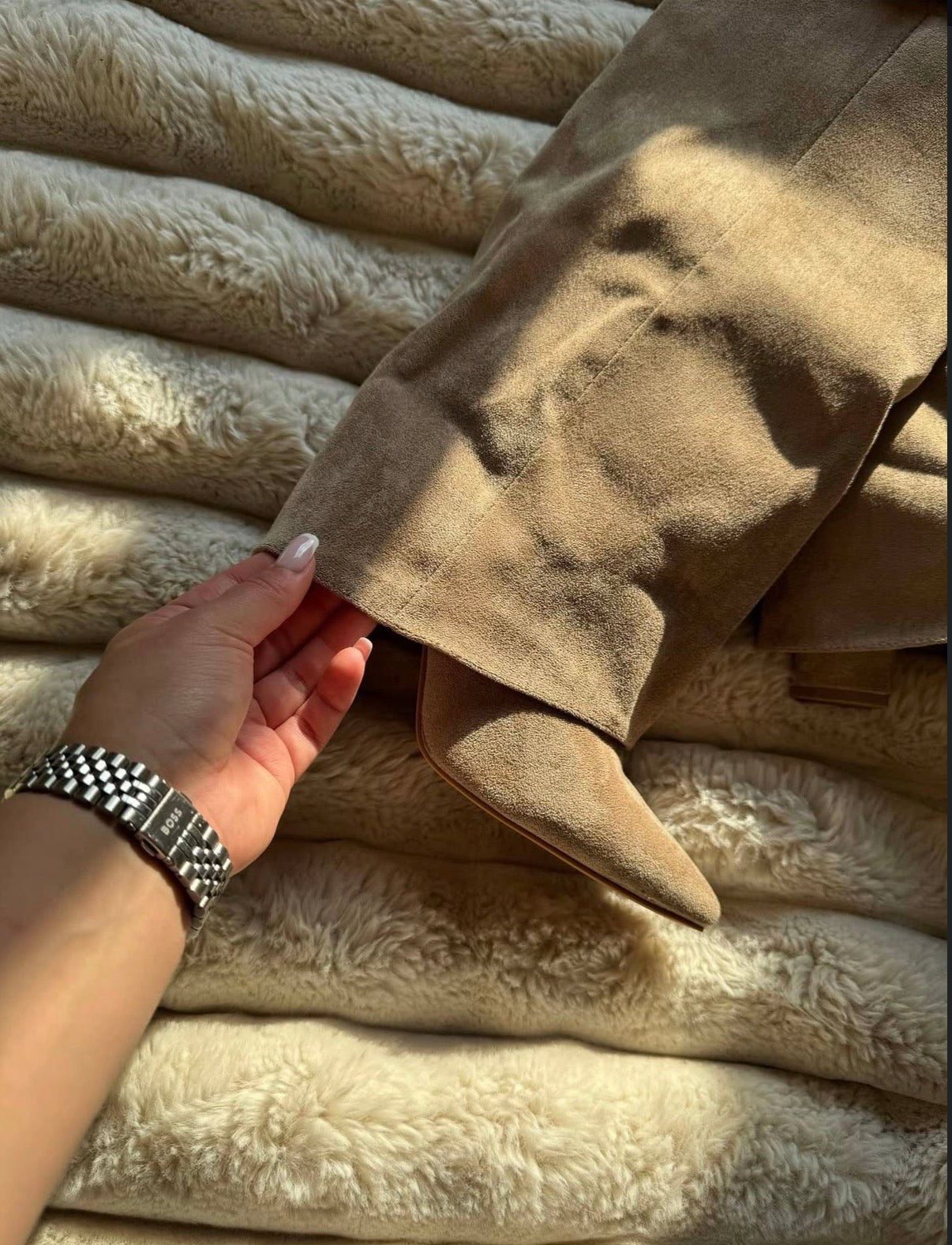 Dank des eingebauten 8 cm Keilabsatzes erhält der Stiefel eine feminine Linie und zusätzlichen Stand, bleibt dabei aber außergewöhnlich bequem – der Absatz fühlt sich beim Gehen deutlich niedriger an, da er vollständig integriert und optimal ausbalanciert ist. Perfekt kombiniert mit Strick, Mänteln oder Kleidern – für einen mühelos glamourösen Herbst- und Winter-Look.